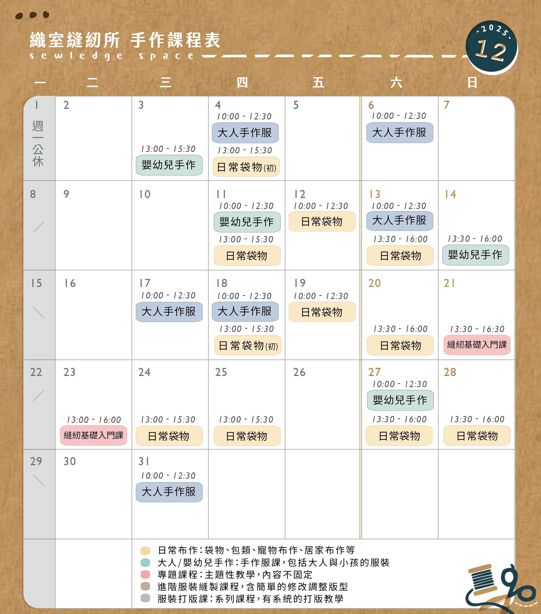 因本網站無法報名,歡迎至織室粉專查看當月課表及課程介紹&報名表單。